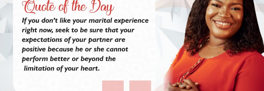 You have to be positive-minded about yourself, your spouse, and the products of your marriage so as to see the desired result. If you don’t like your marital experience right now, seek to be sure that your expectations of your partner are positive because he or she cannot perform better or beyond the limitations of your heart.