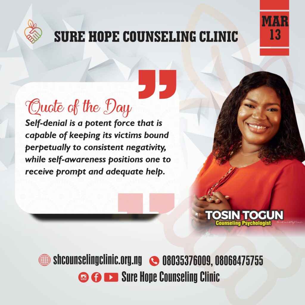 Self-denial is a stronghold that usually keeps its victims perpetually bound to their negativity, even in the presence of abundant help.