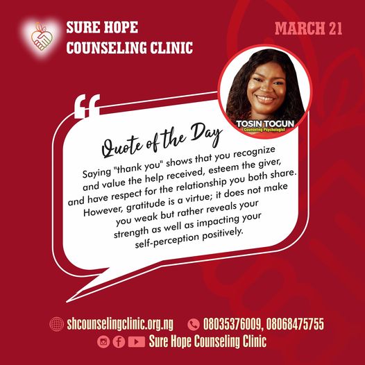 Saying “thank you” shows that you value the help received, esteem the giver, and have respect for the relationship you share. “Thank you” does not impair your esteem or make you weaker; rather, it reveals your strength and has a positive impact on your self-perception.